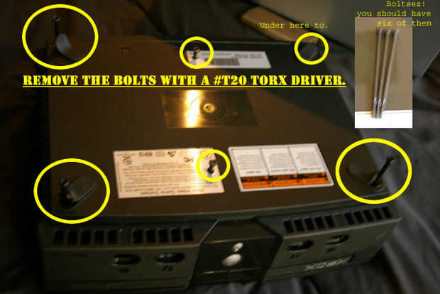 Sólo Retire los seis tornillos Torx para la parte inferior de la XBOX usando un destornillador Torx #T20.