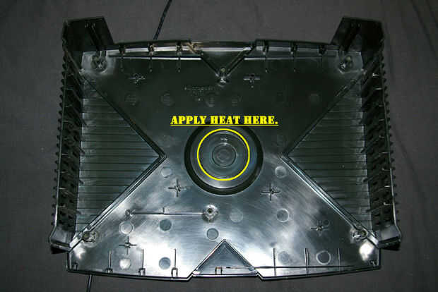 Sostenga la carcasa de plástico de la parte superior de la XBOX hacia abajo con la mano en la joya.