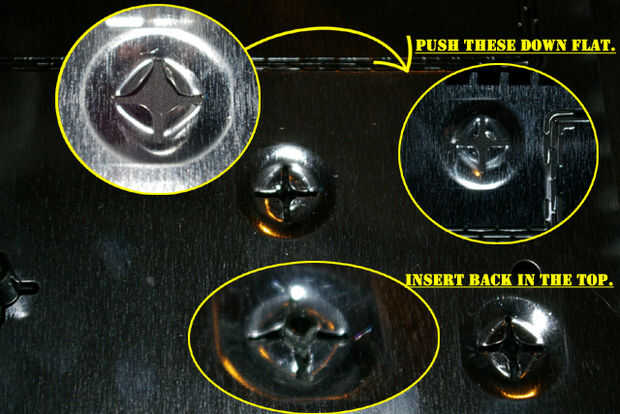 Use un destornillador de cabeza plana para aplanar las orejas de los clips que puedan hasta antes.