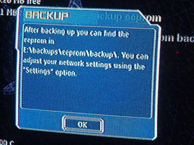 4) otra ventana será emergente diciendo donde se encuentra la copia de seguridad eeprom. debe estar ubicado en e:\backups\eeprom\backup\ escritura abajo de su ubicación para que no se olvide donde fue colocado.
