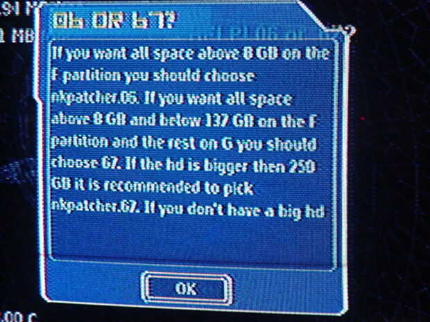 Si usted está planeando sobre la instalación de más de 250 gigas del disco duro, es aconsejable que elija.67. Sin embargo, cambiar de disco duro no se cubrirán en este instructable. Si no vas a trastear con el disco duro, como la mayoría, no importa que patcher que usted elija. Sólo elegí.06.