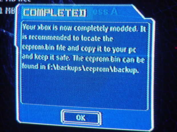 Cuando se dice copiar el archivo de eeprom a tu ordenador,! no no presiona A, seleccione ok, subir a su computadora mientras la pantalla está para arriba. Nada malo va a pasar si lo haces más adelante, pero no olvidar hacerlo de esta manera. Además, copiar el contenido de C y E para su computadora. Esto le ahorrará partidas guardadas y la interfaz Xbox regular.