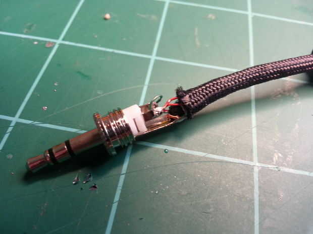 Por favor nota: Reemplacé el cable plano con 4 altavoces cable aquí por lo que los colores que ves en las fotos no son representativos de lo que se verá con el auricular. Colores originales se indican en el texto.