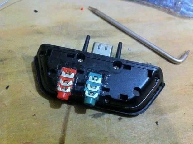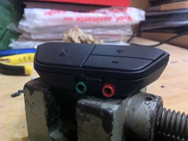 Depois de parafusar os 4 parafusos no lugar, precisará de você fazer um corte na capinha externa de proteção encaixe corretamente no. controle para conectores de audio e micrófono novos. Coloque un capinha por cima, marque un posição correta e com um corte de os estilete faça no até encostar fundo plástico. Cuidado ao manusear o estilete para isto, pois o plástico é um pouco rígido e pode causar um acidente se o estilete para incorretamente manuseado. O correto é usar uma luva de couro e apoiar em um local firme, nunca contra o peito ou outra parte corpo.