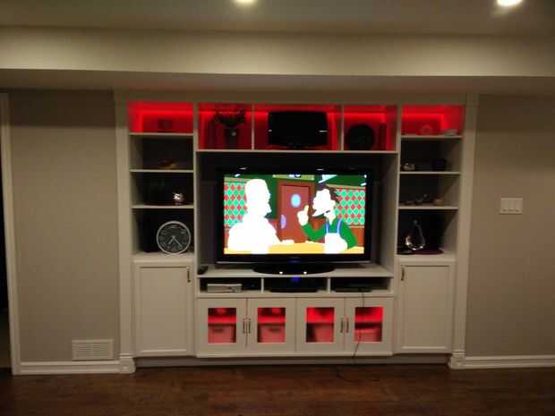 Recientemente terminé mi sótano. Parte de la construcción fue construido en estantería sistema de entretenimiento.