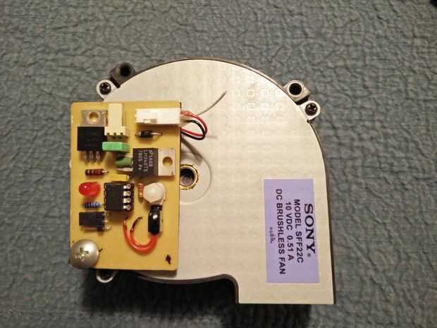 Tenía un ventilador de tipo que no había utilizado desde un proyecto anterior. Iba a utilizar para enfriar el cubby de PS4. Al principio, traté de diseño del sistema de control con el IC discreto de como el LM393 comparador. En la práctica no he podido conseguir la ventana de histéresis para trabajar correctamente con un voltaje de referencia elevado por lo que abandoné este diseño para un microcontrolador. Para un proyecto pequeño como este, decidí usar un Picaxe 08M 2. Pensé en PWM girar gradualmente hasta el ventilador según la temperatura ambiente, sin embargo mi diseño inicial indica que obtendría buenos resultados accionando simplemente el ventilador encendido y apagado.