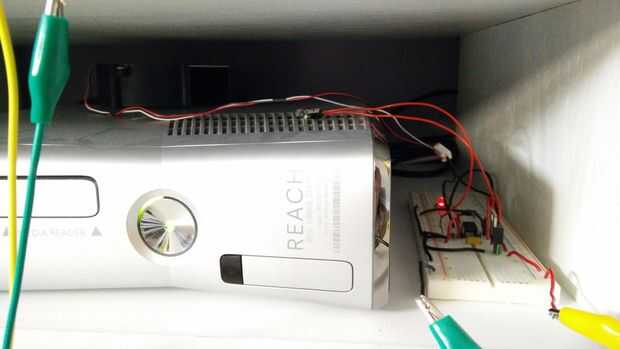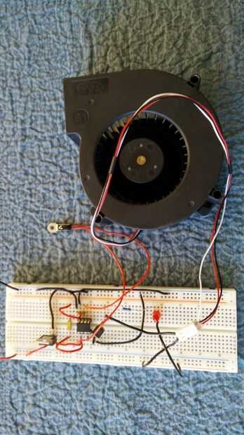 El siguiente paso fue la electrónica de la breadboard. Todos mis componentes electrónicos que no sean el microcontrolador Picaxe son rescatados de obsoleto y desechar placas de circuitos electrónicos a que tienen acceso. Si te estás preguntando que puede haber nuevos o IC más apropiado de utilizar, es por esto. Completé el diseño y he probado el circuito con mi Xbox 360 como la fuente de calor ya que la lumbrera de escape del calor era más fácil acceso. Después mucho de mis errores en el camino, el circuito funciona perfectamente.