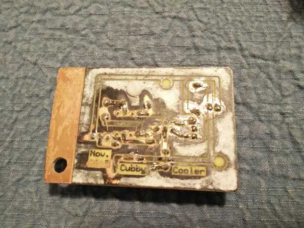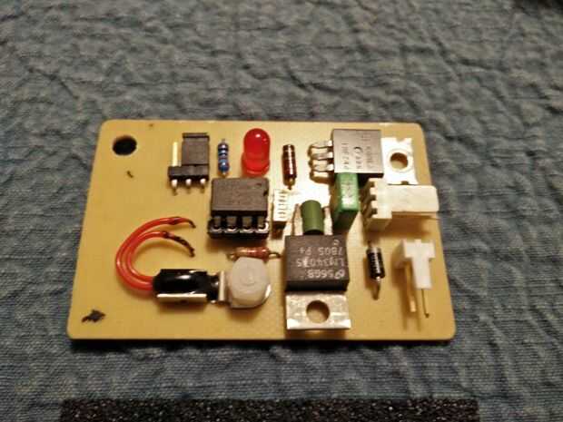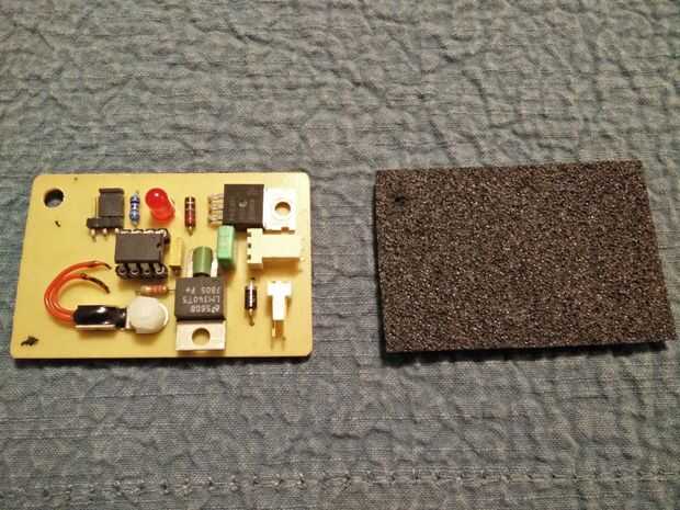 Los agujeros del componente se perforaron con una herramienta dremel para estilo y todos los componentes eran fácilmente la soldadura en la Junta. Corte un forro de espuma que se agregará en el pcb. Esto evitará que los puntos de soldadura cortocircuito hacia fuera sobre la estructura metálica del ventilador.