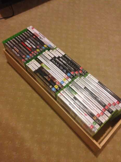 Pila de juegos la Xbox One en su completa caja usted no necesita ya dibuja masiva