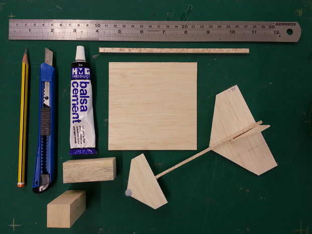 - Una fina pieza de balsa mide 80 x 100 mm x 2 mm de espesor [3 pulgadas x 4 pulgadas x 1/16 de pulgada]- Asegúrese de que el grano corre a lo largo en la dirección de la medición de 100 mm [4 pulgadas]