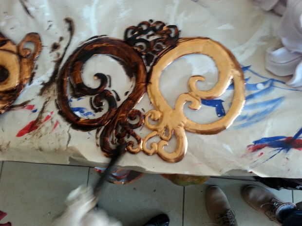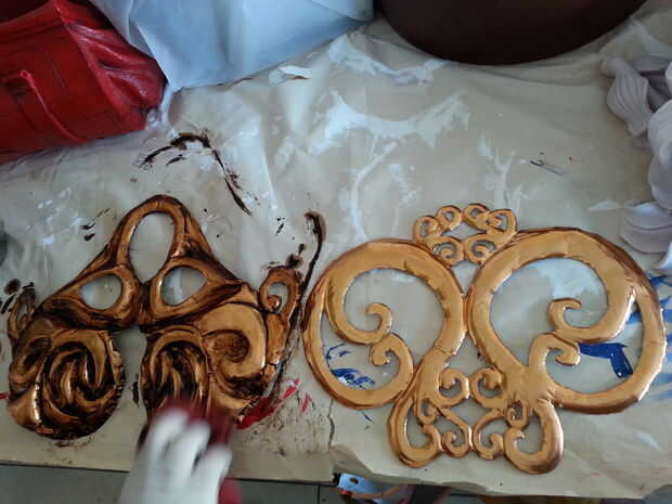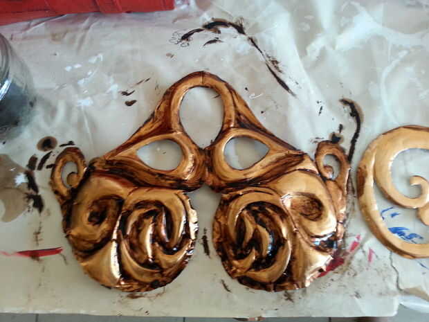 Cuando la pieza frontal y la pieza posterior de la armadura, aplicable echada con el uso de un cepillo, luego limpie la protuberancia piezas así que el tono se mantiene en las piezas dent. Este proceso hace que la armadura parece viejo y usado. También armadura de Xena se ve más oscuro así que con el uso de la echada puede conseguir este look.