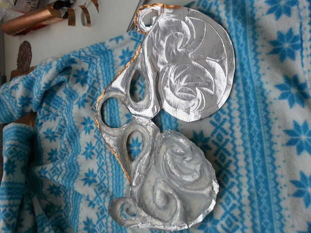 Sugerencia: Hacer las piezas de la protuberancia de la parte posterior de la hoja y mellar las piezas de la parte delantera. Para evitar el daño, llene la armadura con el adhesivo caliente cuando se hace.