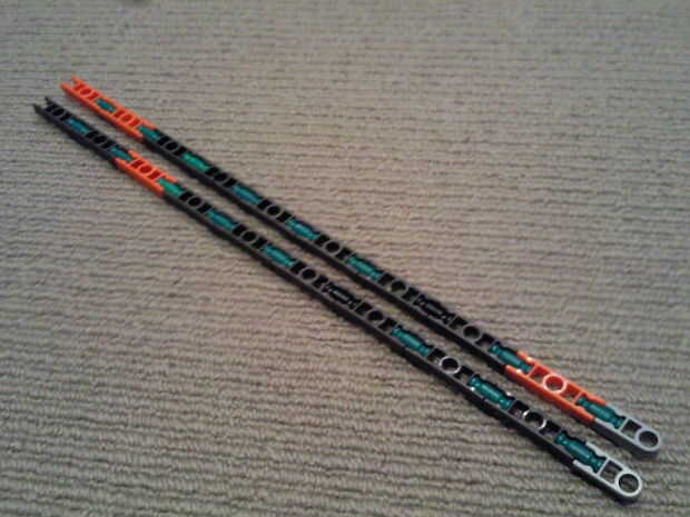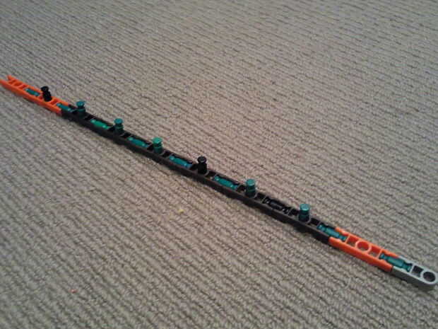 Paso 4: Colocar barras verdes en el los orificios seleccionados como se muestra.