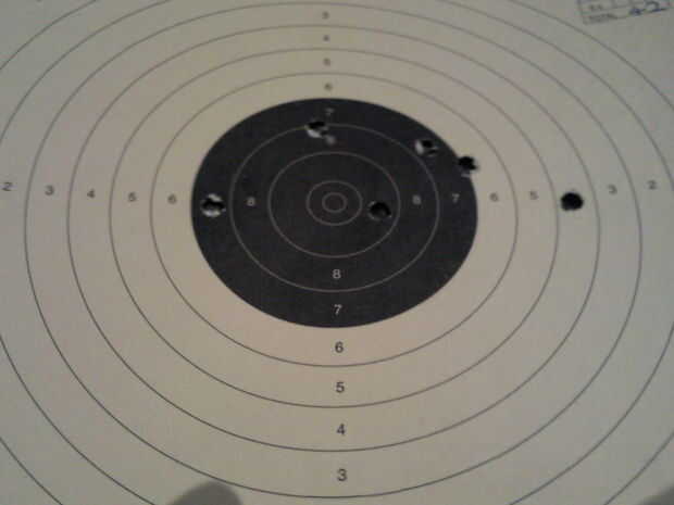 Paso 8: Apunta y dispara! (La foto es del primer blanco que usé en el club de pistola con una pistola de aire comprimido, vencer a mi padre por dos puntos, jejeje)