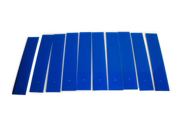 Las barras de acrílico eran cada 10 x 2 pulgadas. Cada barra tiene dos orificios en los que un tornillo de máquina a través de la barra de la guía y montaje en el panel superior de la caja de madera.