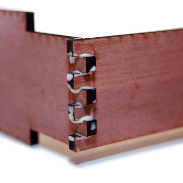 La caja de madera que diseñé es 10.5x30x3 pulgadas. Es una caja poco profunda que soporta la electrónica incrustada dentro de él. Utiliza woodglue y un hisopo de algodón para garantizar a todos los rincones y permitió 24 horas curar antes de lijar todos los bordes.