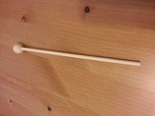 * Un pasador de madera y una bola de madera para hacer el mazo. Lo realmente cualquier tamaño. Se utilizó pasador de 3/16" a 8" de largo y una 3/4" diámetro bola de madera. Perfore un agujero en la bola, poner pegamento en el agujero y poner el tornillo en él y le termine. Ver la tercera foto de arriba.