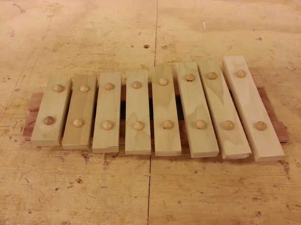 Nota: Utilice la madera más dura disponible. Utilizamos el álamo, que es más duro que el pino pero no sorprendentemente difícil. Aunque es bastante bueno. http://en.wikipedia.org/wiki/Janka_Wood_hardness_rating. Maderas más duras hace el sonido anillo hacia fuera para más de largo, es por ello "xilófonos" (realmente Metalófonos, puesto que "xilo" significa madera) del metal del anillo hacia fuera por más de madera.