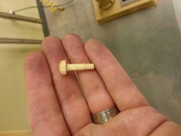 * Madera clavijas. Cualquiera puede conseguir clavijas en forma como en la foto, que lucen como un clavo, o conseguir la clavija de madera y hacen su propia (colocando una pelota de madera al extremo de un pasador, por ejemplo). Usted puede conseguir las clavijas que se muestra en una ferretería. Las usé tenían un árbol de aproximadamente 3/16" y el eje largo de aproximadamente 3/4".