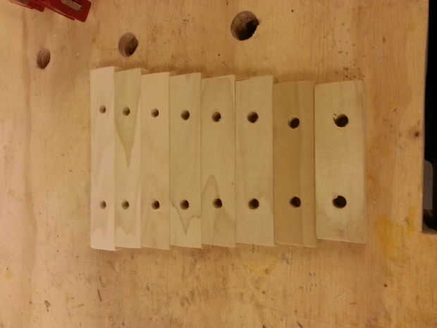 Obtener la longitud del archivo .xlsx aquí: davidnhutch.com/files/keep/XylophoneLengths.xlsx. Encontré algunos bar de xilófono calculadoras de longitud en línea (el enlace está en el archivo .xlsx) y que utiliza como punto de partida para el archivo de Excel. Básicamente, usted ingresa la longitud total de forma rectangular de la barra tienen disponibles y le informará cómo cortar 8 bares que utilizan esa longitud, hacer una octava de notas musicales. Estos no ser perfectos para nosotros los sintonizará más adelante, pero debe tratar de cortar con la mayor precisión posible de todos modos.