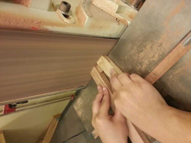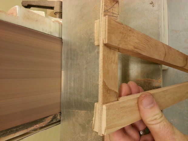 OK, puede hacer el marco de un número de maneras. Lo que decidimos hacer fue cortar una ranura en el extremo de cada largo borde del marco con dos cortes paralelos de la sierra. Luego que las dos piezas cortas más delgado por lo que encajan en las ranuras, otra vez empujando contra la guía de la sierra y corte un espesor más pequeño. Tenga cuidado aquí ya están cortando pequeños trozos para que no te los dedos en la sierra, utilice un "palo de empujar" para todo.
