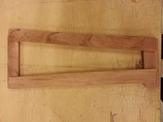 OK, ahora tienes dos bordes de marco larga con una ranura en cada extremo y dos bordes de marco corto esa ranura en las ranuras. Es realmente feo en este momento porque todo se está pegando hacia fuera más allá de donde debe, como se muestra en la foto. Ok, nos vamos limpiar en el siguiente párrafo.