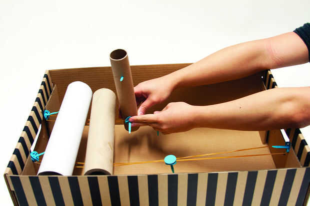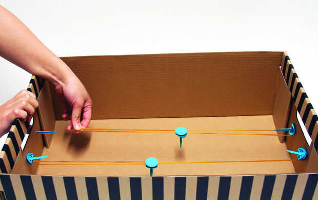 he copiado esto del Museo de los niños que llevamos mi hija. Consta de 3 2 x 4 x 8' secado al horno (no utiliza presión... malo para los niños), unos 15' de cable, algunas grapas y una clavija de madera. El costo total es menos de $10 y se puede ha