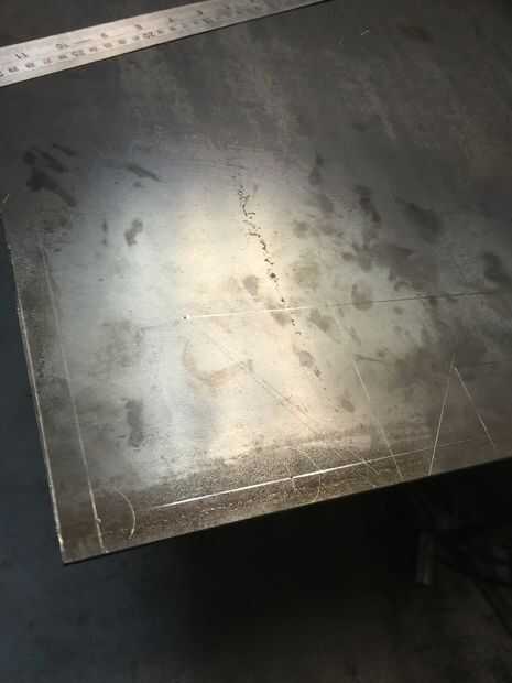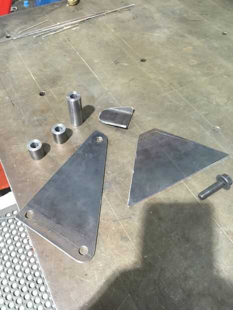 Mucho cuidado de medición, la trigonometría y la frustración (tomando en cuenta hasta qué punto la polea espaciar el soporte, hasta qué punto el soporte espaciar el bloque, el espesor del material en las juntas y tensión de la correa porque estaba usando una polea más pequeña del tamaño etc.) me di cuenta de las formas que necesitaba para cortar que el extremo de la polea hasta donde lo necesitaba , marcó los tres pedazos de unos 3mm de chapa corten y cortar con una amoladora.