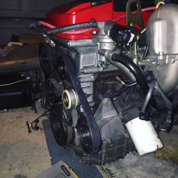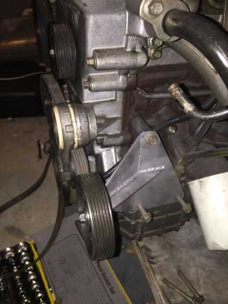 Estaba satisfecho que todo estaba como quería así que hice una costilla por la mitad apoyo de todas las piezas completamente soldadas todas juntas, poner la polea en y atornillada al motor. Estoy muy contento con cómo resultó y lo pintará junto con otros pedacitos de motor más tarde.