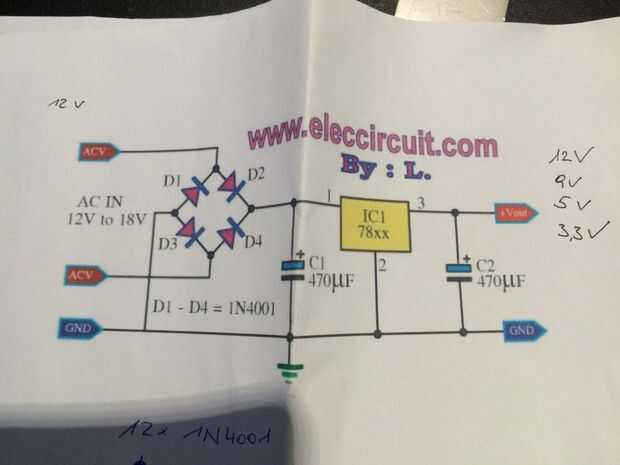 Da ich eine Menge Computerschrott herumliegen habe, mueren de habe ich mir Bauteile aus den Platinen rausgelötet, deshalb die unterschiedlichsten Voltzahlen.