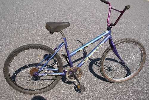 Saqué este marco de mi montón de chatarra después de que había sido despojado de manillar, frenos, cadena, horquilla, etc.. Se ve raro porque acabo de poner las piezas en lo que yo tenía por ahí. Es compatible con la idea de que puede usar cualquier bicicleta tiene como punto de partida.