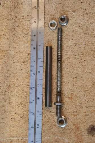 Cuando la soldadura se haya completado la varilla eje roscado a través del tubo de metal del eje y apriete las tuercas interiores dos para mantener en su lugar. Añadir las dos tuercas exteriores para que estén listos para apretar en el siguiente paso. Véase la figura 1.