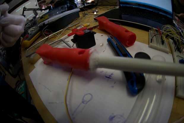 -Algo para hacer 2 manijas que también apoyará el servo (hemos utilizado un mango paintrollers con un pedazo de tubo de PVC)