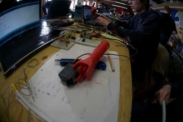 Algunos corte y la perforación fue hecha en la parte posterior de la manija para hacer el ajuste del servo. Hacer shure que el servo se alinea con el eje del mango.