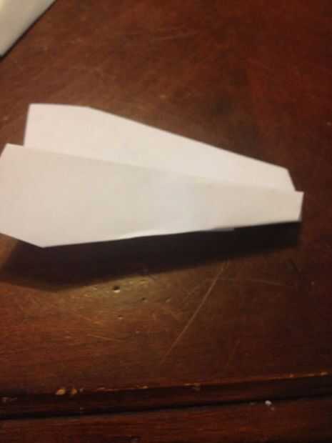 Recostarla y doble un lado hacia abajo. Debe ser paralelo a la parte inferior del avión. Hacer esto para el otro lado también. Ahora usted puede Agregar ilustraciones ni colores, salir y volar. Este plano también funciona bien dentro de la casa.