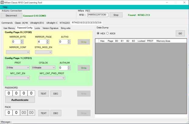 Seleccione la ficha contraseña/Config y la aplicación abrirá lo que se ve en la foto.