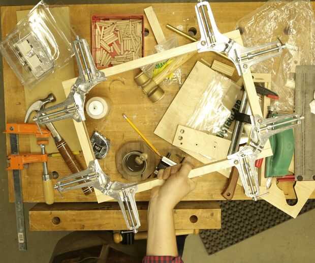 Luego me uní a las partes de la bandeja con pegamento y unirse a tacos. Las abrazaderas de esquina aseguran de que todo es cuadrado. Es importante que la colocación derecha-los postes tienen que colocarse que agujeros más bajos enfrentan el lado largo del rectángulo, y los agujeros superiores frente el lado corto.