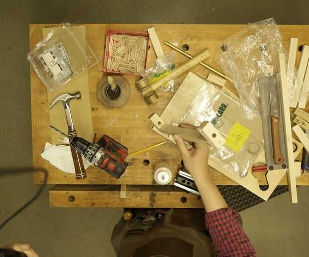 Terminada la bandeja, pega y fijada a la base con un desplazamiento de 2 1/4" de cada lado (las dimensiones están en los planos de taller).