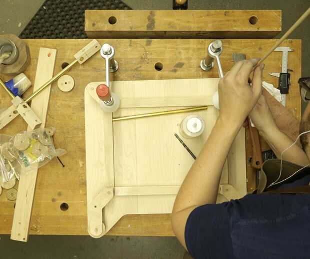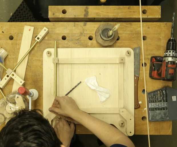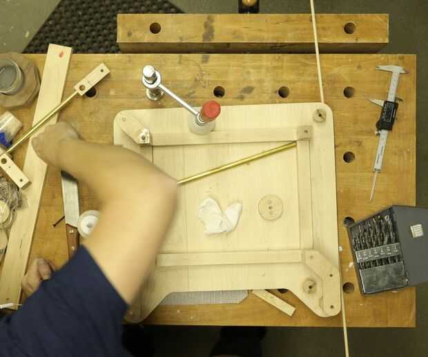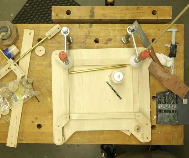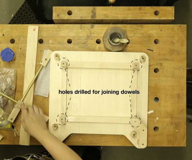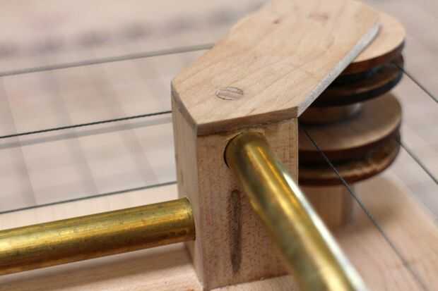 Las tapas del eje del pegamento a la veta de los postes de la bandeja, que significa pegamento sólo no hará el truco. Para solucionar esto, taladré agujeros en los postes para la Unión de tacos. Las tapas de los postes son muy finas una vez que han sido perforados los agujeros para los tubos de latón, así que esto no es realmente ideal.