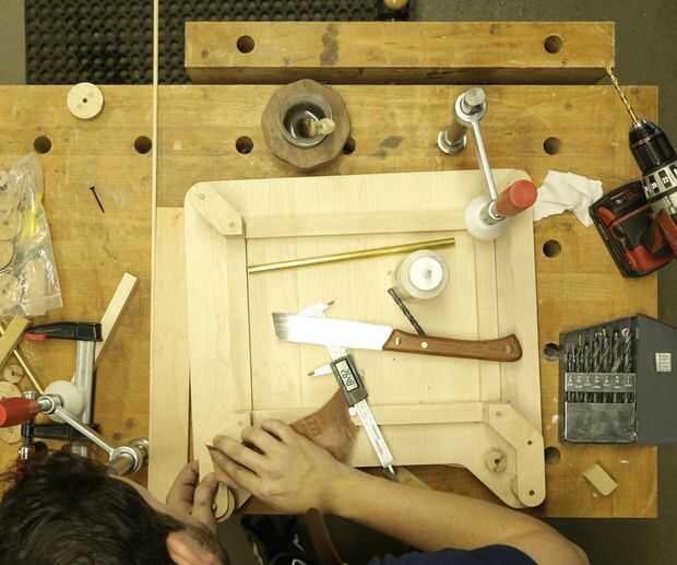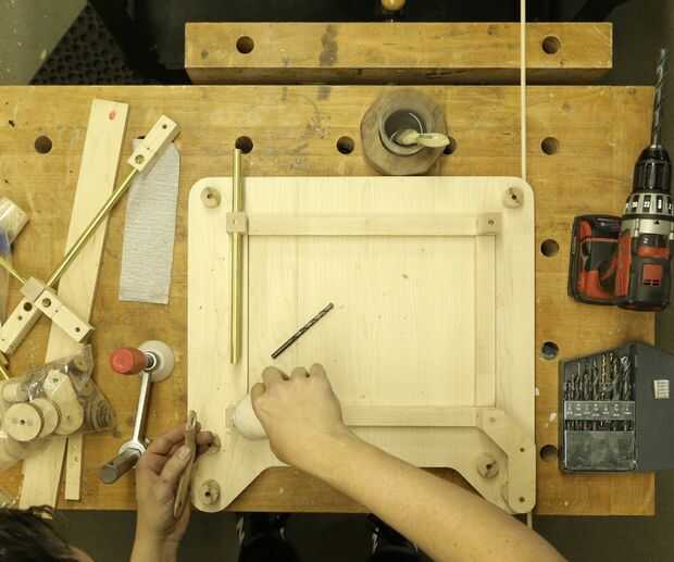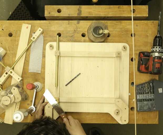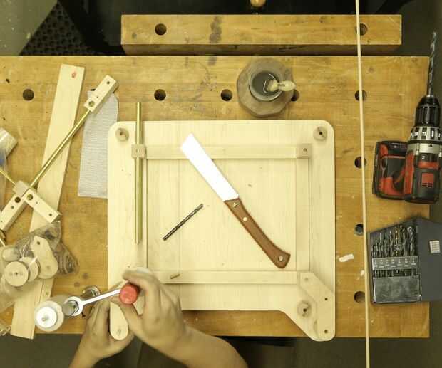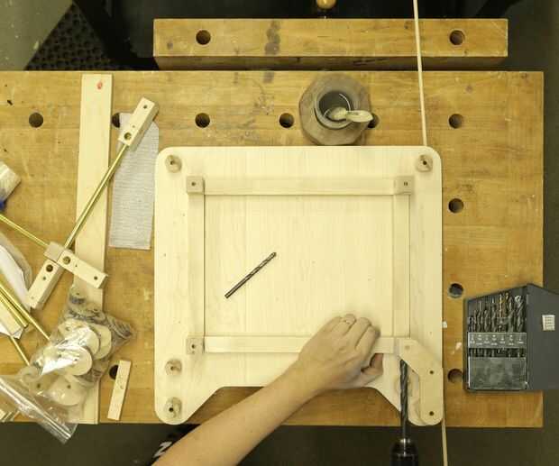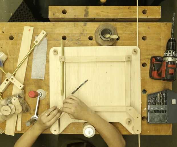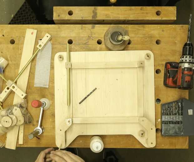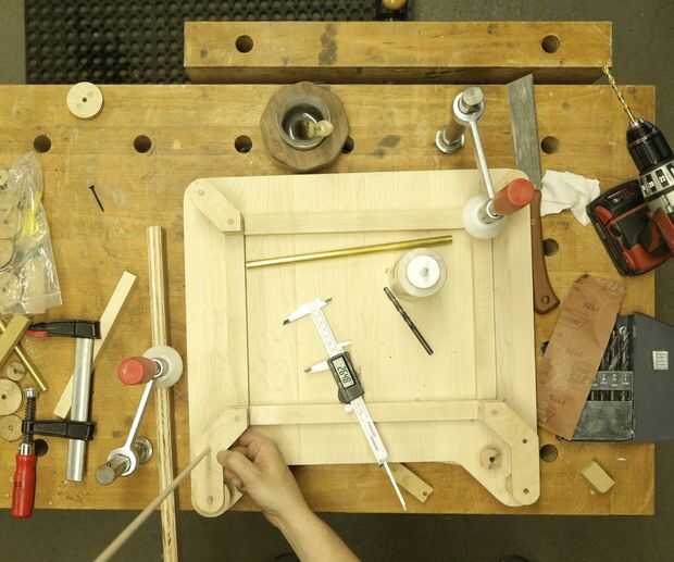 Repetí este proceso usando una abrazadera de mesa para cada tapa y funcionó a la perfección. Una vez los casquillos en el lugar, también inserta el resto de los tacos de eje y había cortado a la medida.
