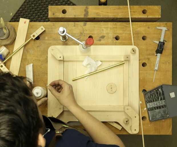 Para alinear correctamente los tapones, seco-quepa un taco en el segundo agujero en la tapa de cada eje. Esto mantiene las tapas en lugar mientras que el pegamento curado.