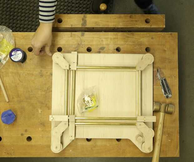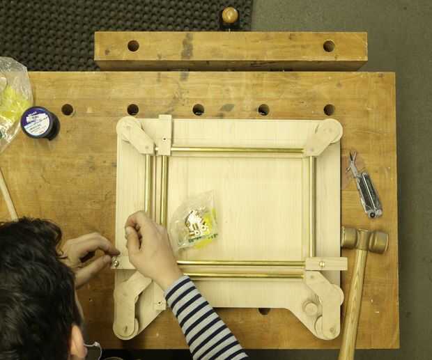 - Una vez que es a través de las poleas hilos a través de la 1/8" agujero en el primer carro de nuevo, esta envoltura de tiempo en el tornillo que mantiene en su lugar cuando se aprieta.