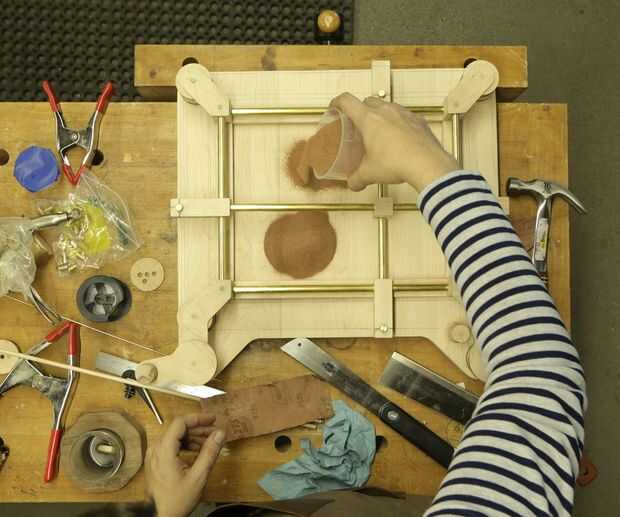 Se puede utilizar prácticamente cualquier arena, pero fui arena granate púrpura porque brilla y crea un bonito contraste con la madera de color clara.