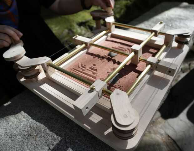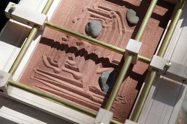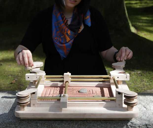 Con el Kit de jardín de XYZen, puede construir tu propio jardín zen mecánica con laser de corte de piezas de madera contrachapada, tuercas y tornillos y algunos tubos. Disfrute de un estado meditativo, enfocado al girar las manivelas para crear sus p