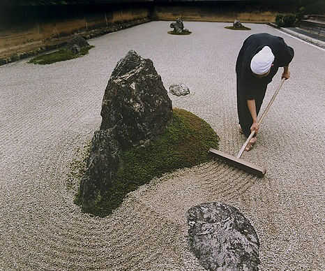 El concepto de un jardín zen donde un mecanismo simple es el mediador entre la persona y el dibujo de arena me fascina por una serie de razones. Los sacerdotes Zen utilizan el acto de rastrillar la arena (o grava) como una forma de meditación mediante la concentración, conexión con la naturaleza mediante la creación de una representación abstracta de la misma (olas y corrientes alrededor de las rocas).