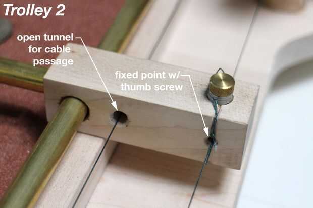 La corte alrededor del perímetro de los carros es una forma de controlar la tensión en el cable. Mantiene el cable en el agujero y el tornillo de pulgar, prevención de deslizamientos y sedimentación como se acostumbra la pieza. Hice esta ranura por una rápida, poco profunda, línea recta de corte en cada cara, y luego repasar con una Lima cuadrada en un ángulo de 45 º, dándome un buen surco.