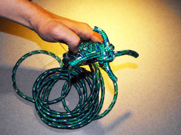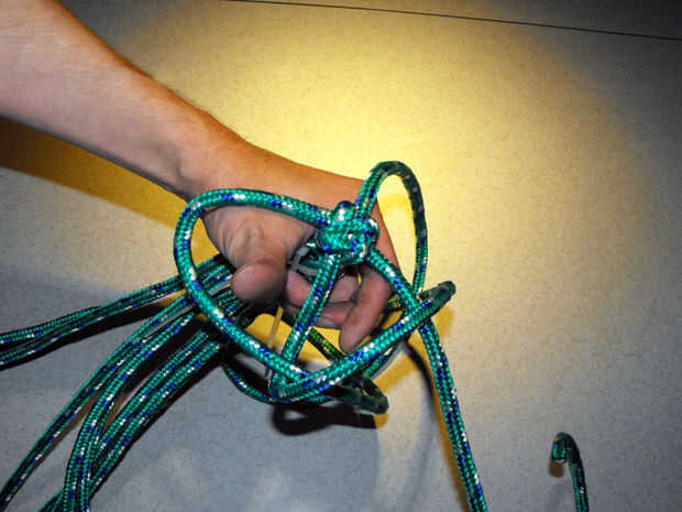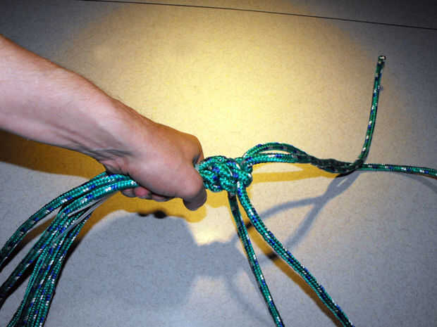 15. siga apretando las cuerdas hasta que se produzca un nudo apretado uniformemente