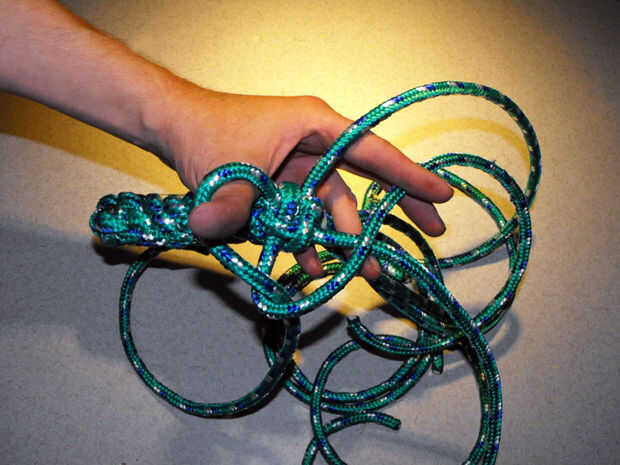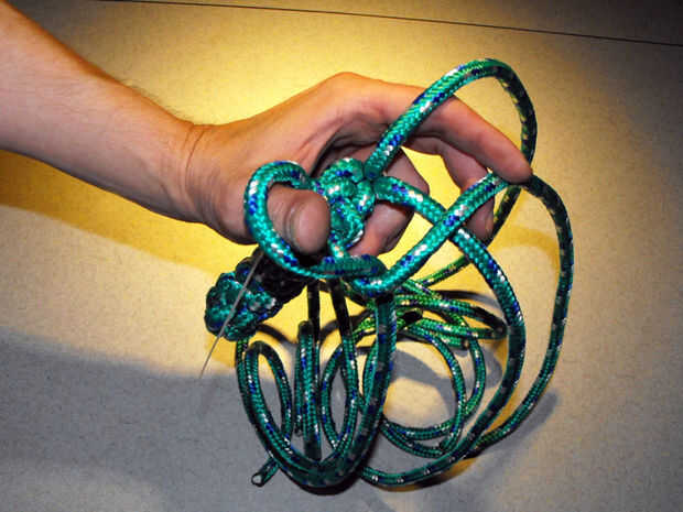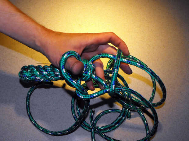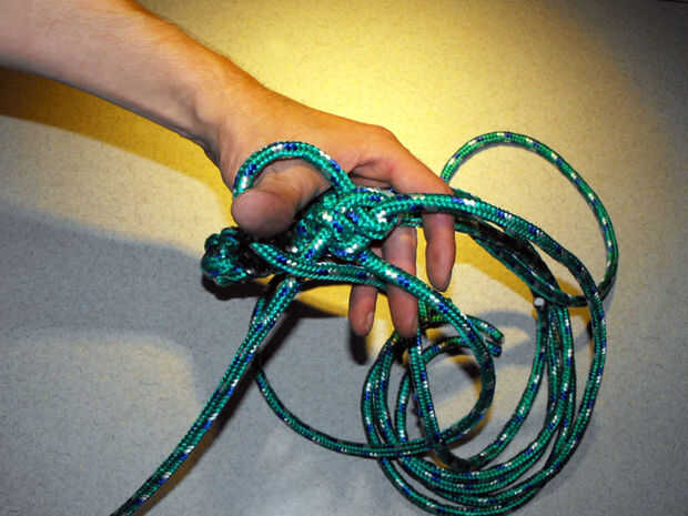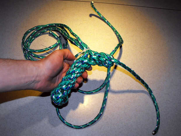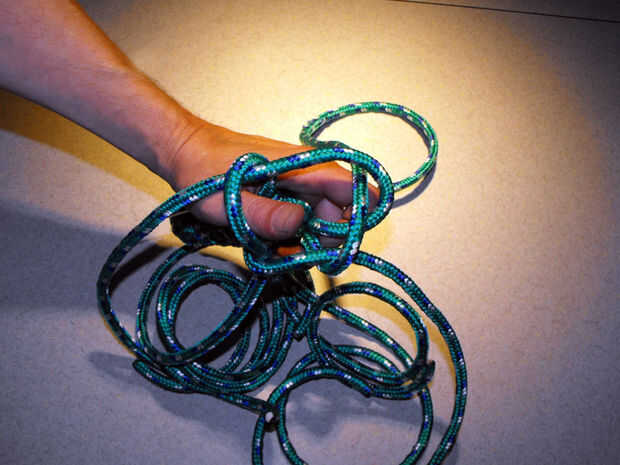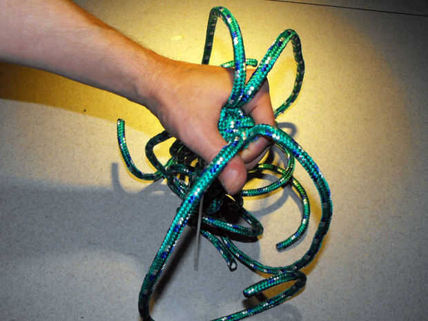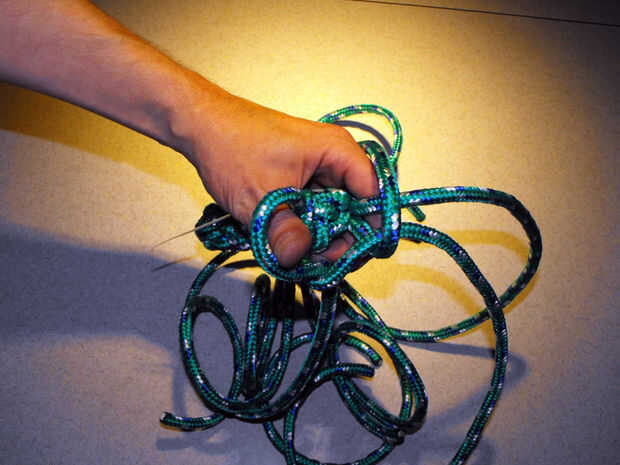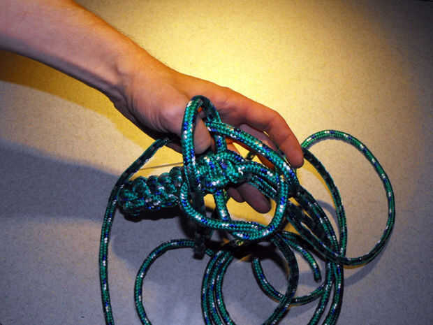 15. siga apretando las cuerdas hasta que se produzca un nudo apretado uniformemente