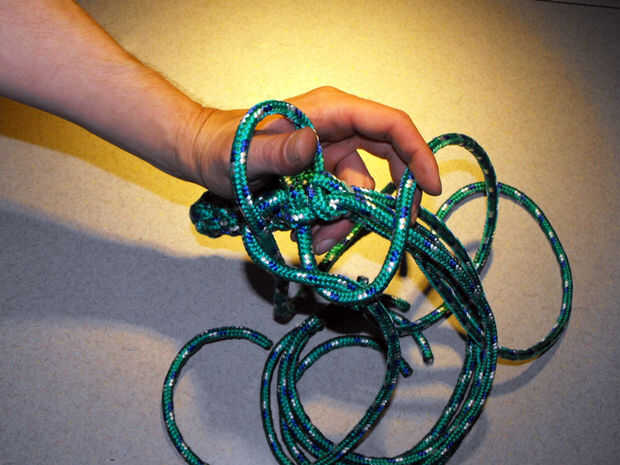 9. extiende las cuerdas sobre la parte superior del puño con una cuerda detrás de pulgar