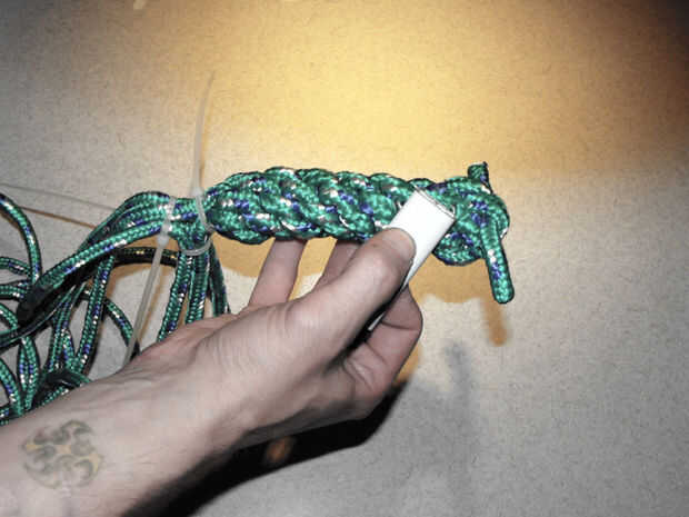 35. mientras todavía caliente final del alumbrador para presionar la cola al ras en nudo